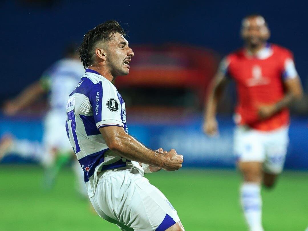 El paraguayo Pedro Delvalle, futbolista de 2 de Mayo, disputa el balón en un partido frente a Alianza Lima por la Fase 1 de la Copa Libertadores 2026 en el estadio Río Parapití, en Pedro Juan Caballero, Paraguay.