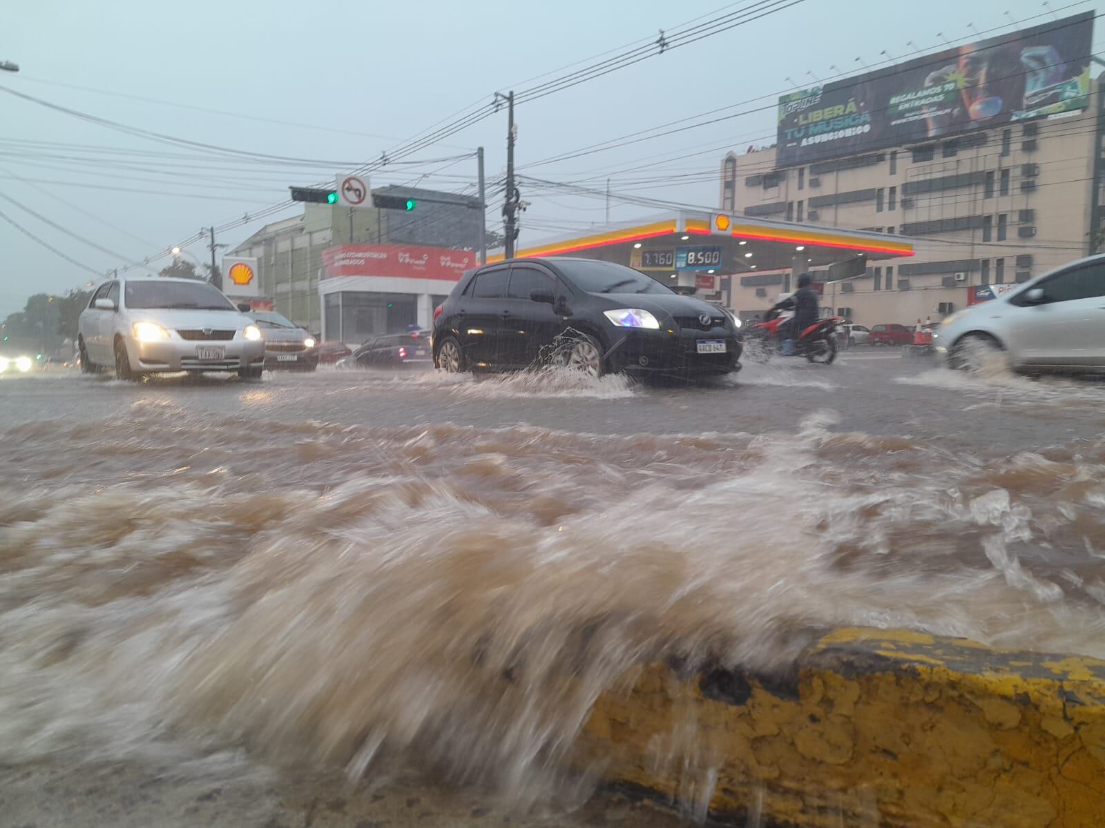 Ante la intensa lluvia caída en la tarde de este miércoles, la Policía Municipal de Tránsito activó los protocolos e informó a través de las redes sociales sobre los puntos críticos de la ciudad de Asunción, donde los conductores deben tomar las precauciones necesarias por acumulación de agua.