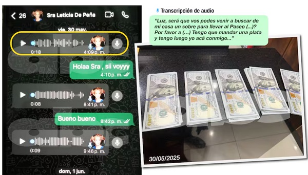 Audios atribuidos a la primera dama Leticia Ocampos de Peña confirman sobres e inclusive bolsas con dinero en efectivo en Mburuvicha Róga. Según la exfuncionaria del Gabinete Civil Luz Maribel Candado, la esposa del presidente Santiago Peña le daba órdenes para la entrega de sobres con plata en tiendas y otros pagos. En algunas indicaciones se oye que el dinero tenía que ser entregado por el mandatario.