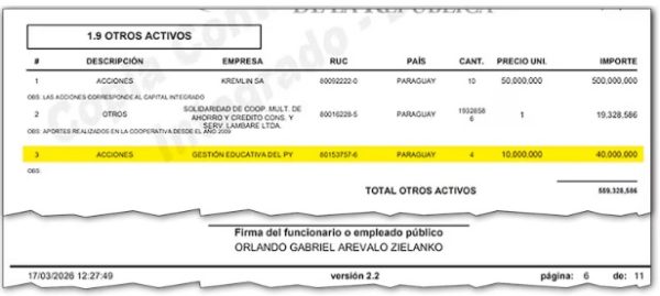 La investigación se centra en la creación de la firma denominada “Gestión Educativa del Paraguay EAS”. Esta sociedad anónima simplificada está dedicada exclusivamente al rubro de la enseñanza. Según el documento oficial, el exlegislador omitió declarar su participación en esta entidad al momento de presentar su baja del cargo público. Esta falta de transparencia administrativa motivó una comunicación directa al Ministerio Público para profundizar en el origen de los fondos.