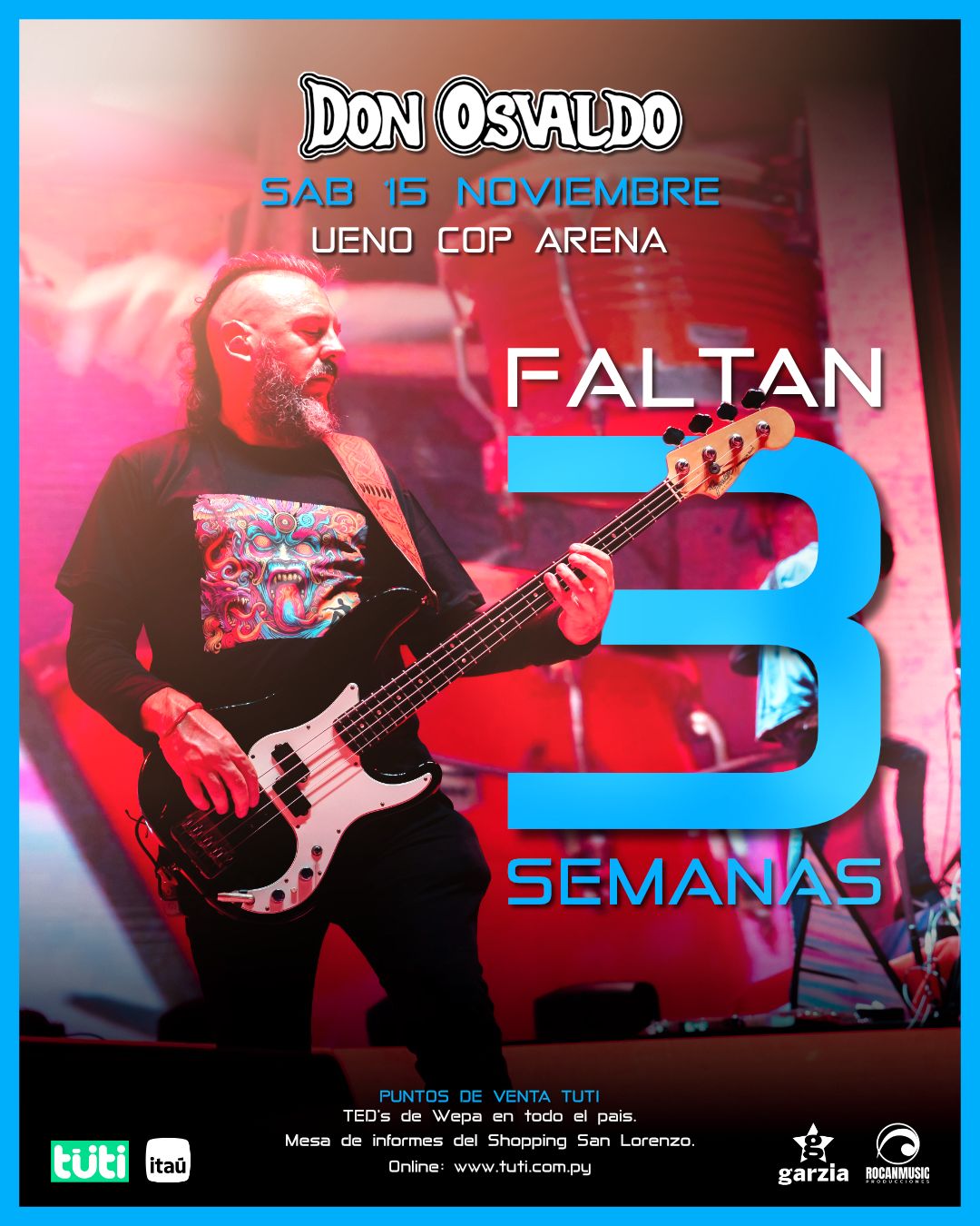 Don Osvaldo llega a Paraguay como parte de una gira internacional que ya agotó funciones en Argentina, Chile, Uruguay y España, con más de 40.000 espectadores en sus recientes shows en el Estadio All Boys de Buenos Aires.