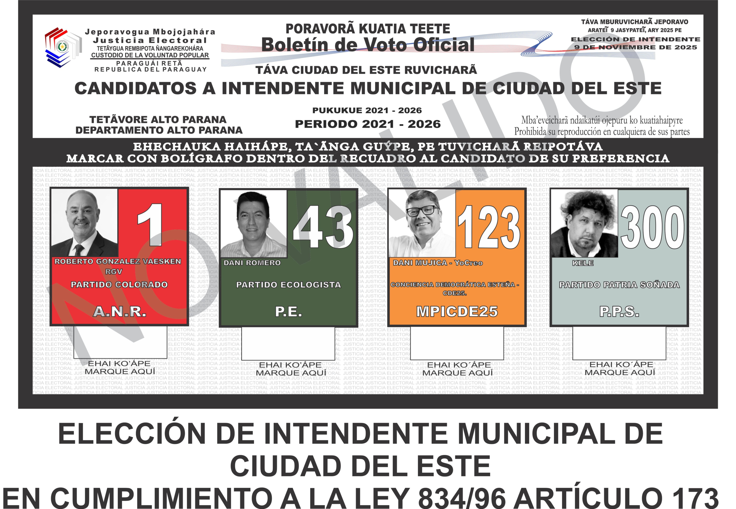 Lea más: Así se verá el boletín de voto para la elección de intendente en Ciudad del Este