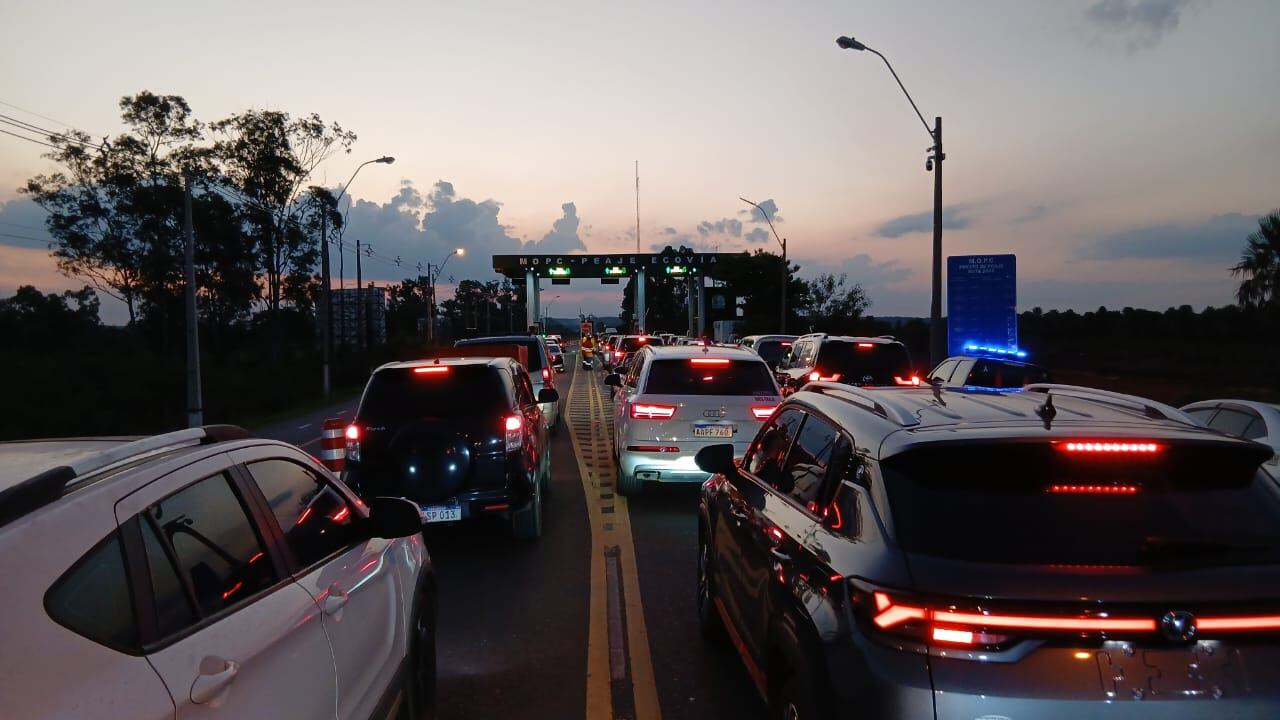 El alto volumen de vehículos que retornan tras el fin de semana desde el interior del país, se registran demoras en el paso por el peaje; sin embargo, la circulación se mantiene constante.