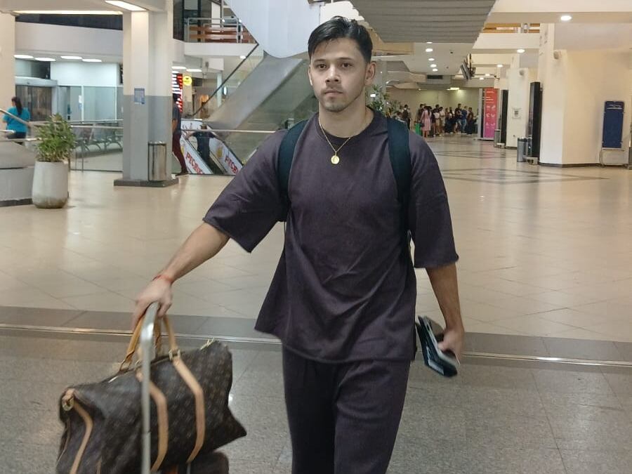 Óscar Romero en el Aeropuerto Internacional Silvio Pettirossi antes del viaje a Argentina para fichar por Huracán.