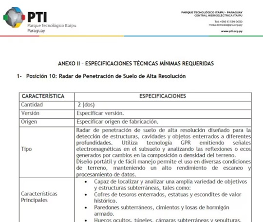 La compra de dos radares GPR por G. 370 millones presenta objeciones por el precio referencial y por coincidencias técnicas con un único modelo del mercado.