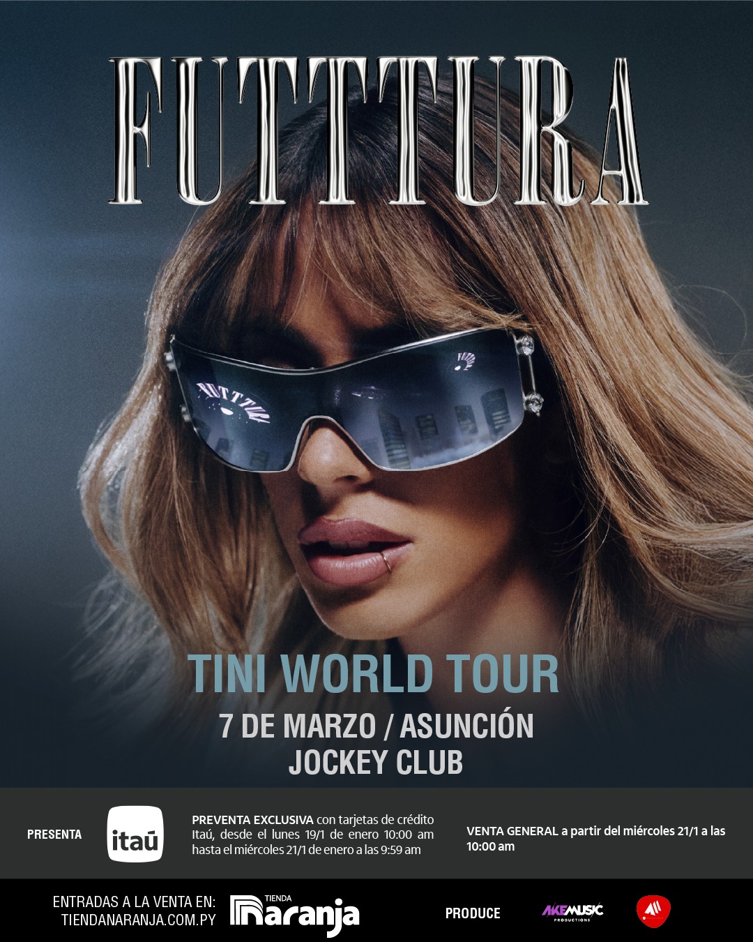 La superestrella argentina, TINI, presentará en el Jockey Club de Asunción, FUTTTURA: una experiencia única que promete ser una celebración vibrante y emotiva de su exitosa carrera.Desde sus inicios en la icónica serie «Violetta», TINI ha cautivado a millones con su talento y carisma, convirtiéndose en un ícono pop global.