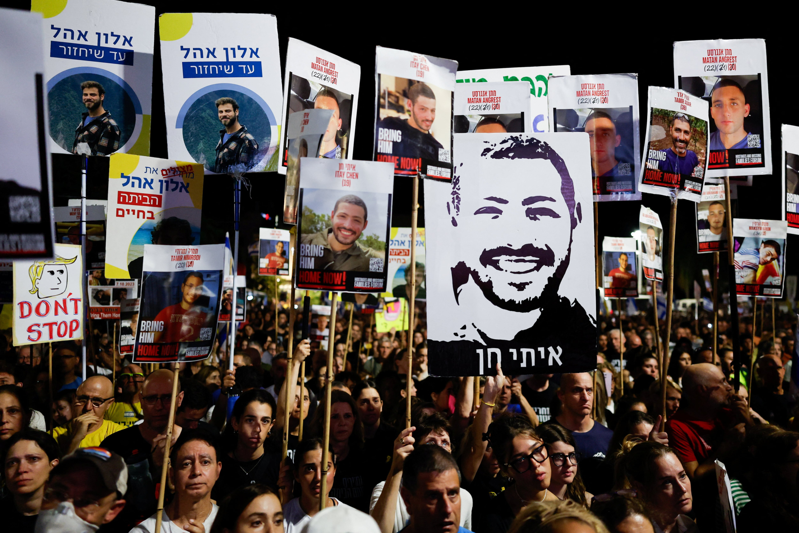 “Ya hubo acuerdos antes, pero esta vez parece distinto”, cuenta en la plaza de la protesta que este sábado ha congregado a una multitud en Tel Aviv para presionar por la liberación de los rehenes. “Sí, me puedo imaginar abrazando a Tamir. No sé en qué condición está, pero espero que haya sobrevivido y que sepa que estamos haciendo lo posible por liberarlo. De lo que estoy seguro es de que lo primero que querrá es un abrazo de su madre”.